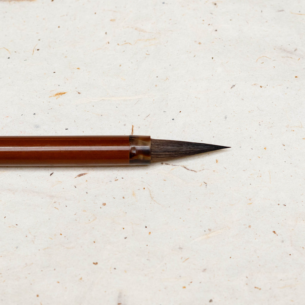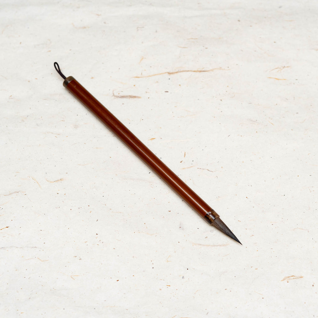 The Windy Bamboo is a hard hair brush, good for making lines, bamboo lines, orchid leaves, and it has a very clever tip. This makes it exceptionally good for turning line strokes (tendrils, vines, running style calligraphy, etc.). Given its size and shape, this brush provides a nice amount of spring for energetic lines.